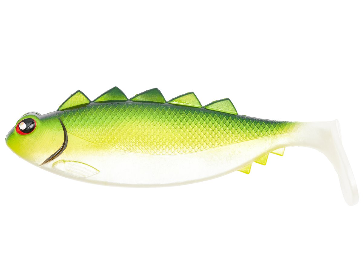 Der INVDR Pike Shad wurde speziell für das Hechtangeln entwickelt. Durch seinen einzigartigen Lauf zieht “Der Eindringling” alle Hechtaugen auf sich. Sein Volumen und konischer Körper ermöglichen ein verführerisches Taumeln über das Kraut, selbst bei langsamer Köderführung. Der große Schaufelschwanz erzeugt eine beeindruckende Druckwelle unter Wasser, was eine schnelle Wahrnehmung des Köders gewährleistet.
