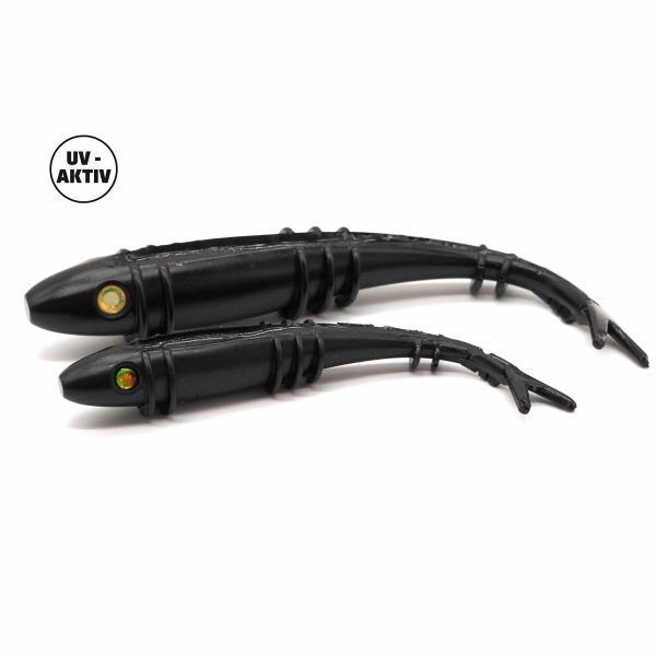 Gerade wenn die Räuber mehr Volumen wollen, dann ist der Lieferant die richtige Wahl. Dieser V-Tail ist für das pelagische und vertikale Angeln bestens geeignet. Gejiggt oder eingeleiert bringt er auch regelmäßig gute Fische ans Band. Dieses V-Tail von Raubfischgarage hat Volumen und zusätzlich 7 Lamellen, die viel Aufmerksamkeit unter Wasser erzeugen. Alle V-Tails sind UV-Aktiv und handgegossen. Außerdem ist der Gummifisch Phthalatfrei und Handmade in Germany.