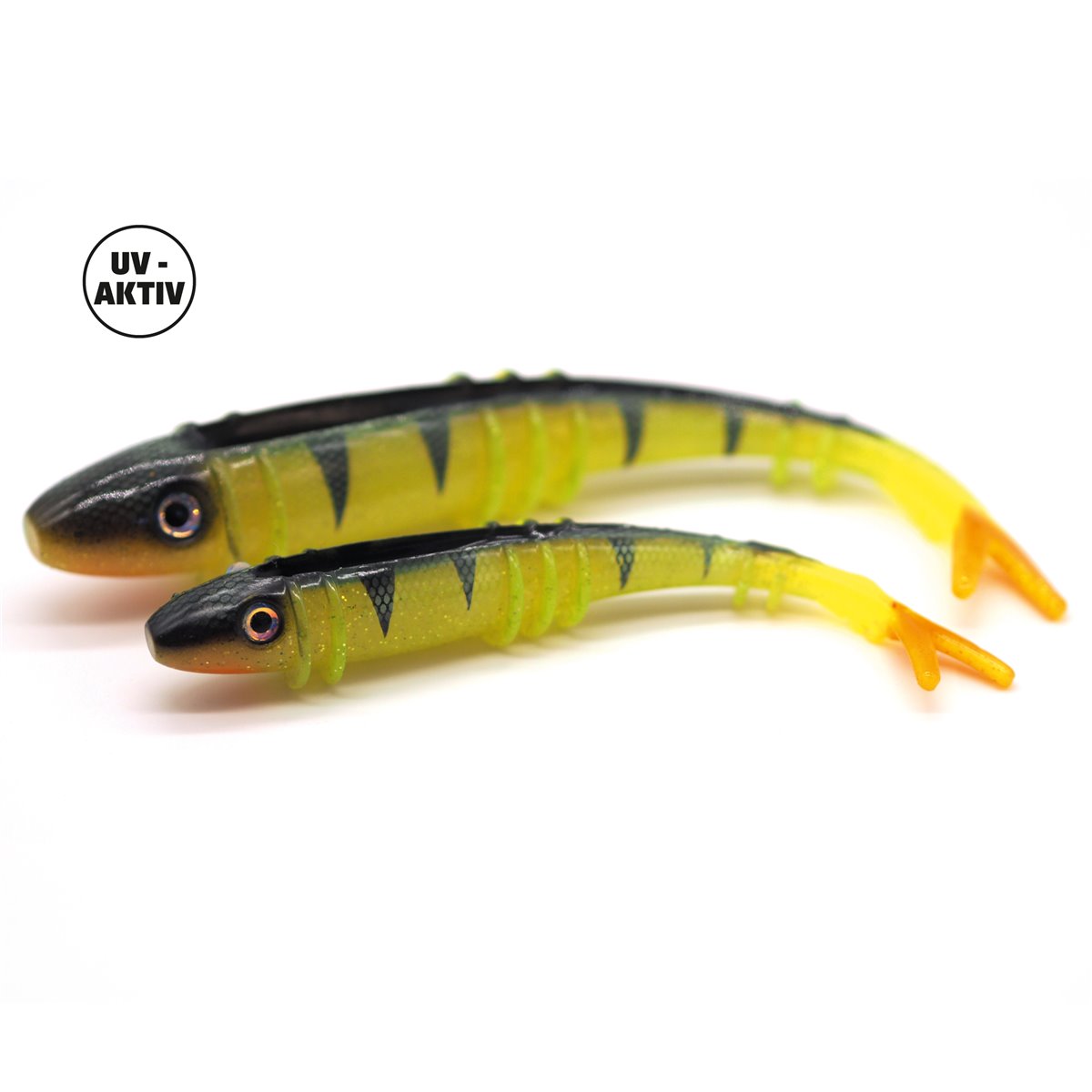 Gerade wenn die Räuber mehr Volumen wollen, dann ist der Lieferant die richtige Wahl. Dieser V-Tail ist für das pelagische und vertikale Angeln bestens geeignet. Gejiggt oder eingeleiert bringt er auch regelmäßig gute Fische ans Band. Dieses V-Tail von Raubfischgarage hat Volumen und zusätzlich 7 Lamellen, die viel Aufmerksamkeit unter Wasser erzeugen. Alle V-Tails sind UV-Aktiv und handgegossen. Außerdem ist der Gummifisch Phthalatfrei und Handmade in Germany.