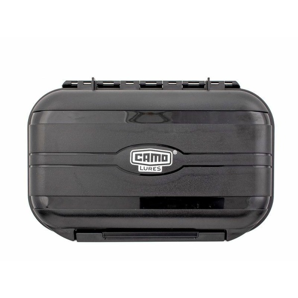In der CAMO Lures Tackle Box TBX-200 finden alle Kleinteile wie Wirbel, Karabiner, Strengringe, usw. Platz. Mit 24 Fächern, die in der Mitte durch eine herausnehmbare Trennwand unterteilt sind, kann man die Fächer vergrößern. Die Box ist aus festem Kunststoff hergestellt und verfügt über eine einhändig bedienbare Schließe. Eine Gummidichtung verhindert das Eindringen von Wasser. Ein Federmechanismus öffnet die Box Kinderleicht im Innenraum. Aus dieser Box kommt kein Zubehörteil raus und durch die Abgerundeten Ecken ist die Entnahme einfach.