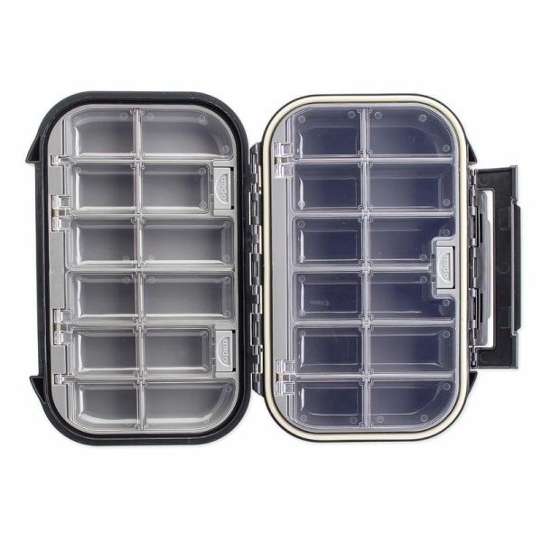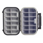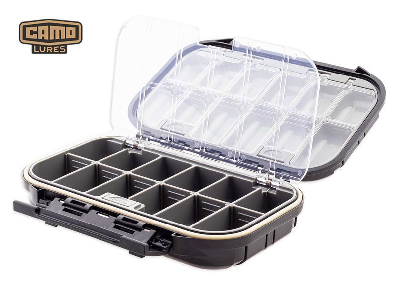 In der CAMO Lures Tackle Box TBX-200 finden alle Klein­teile wie Wirbel, Karabiner, Streng­ringe, usw. Platz. Mit 24 Fächern, die in der Mitte durch eine herausnehmbare Trenn­wand unterteilt sind, kann man die Fächer vergrößern. Die Box ist aus festem Kunst­stoff hergestellt und verfügt über eine einhändig bedienbare Schließe. Eine Gummi­dichtung verhindert das Eindringen von Wasser. Ein Feder­mechanismus öffnet die Box Kinder­leicht im Innenraum. Aus dieser Box kommt kein Zubehörteil raus und durch die Abgerundeten Ecken ist die Entnahme einfach.