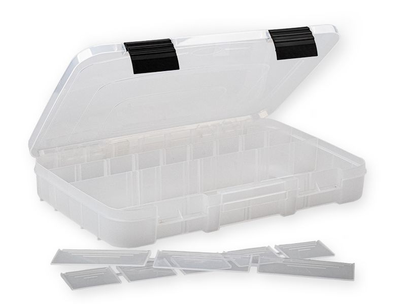 Diese Box von CAMO Lures eignet sich besonders gut für große Gummifische und diversem Angelzubehör. Gefertigt ist die Box aus robusten Material und die Verschlüsse rasten zuverlässig ein. Die Tackle Box Large lässt sich von 3 bis 21 Fächern einteilen.