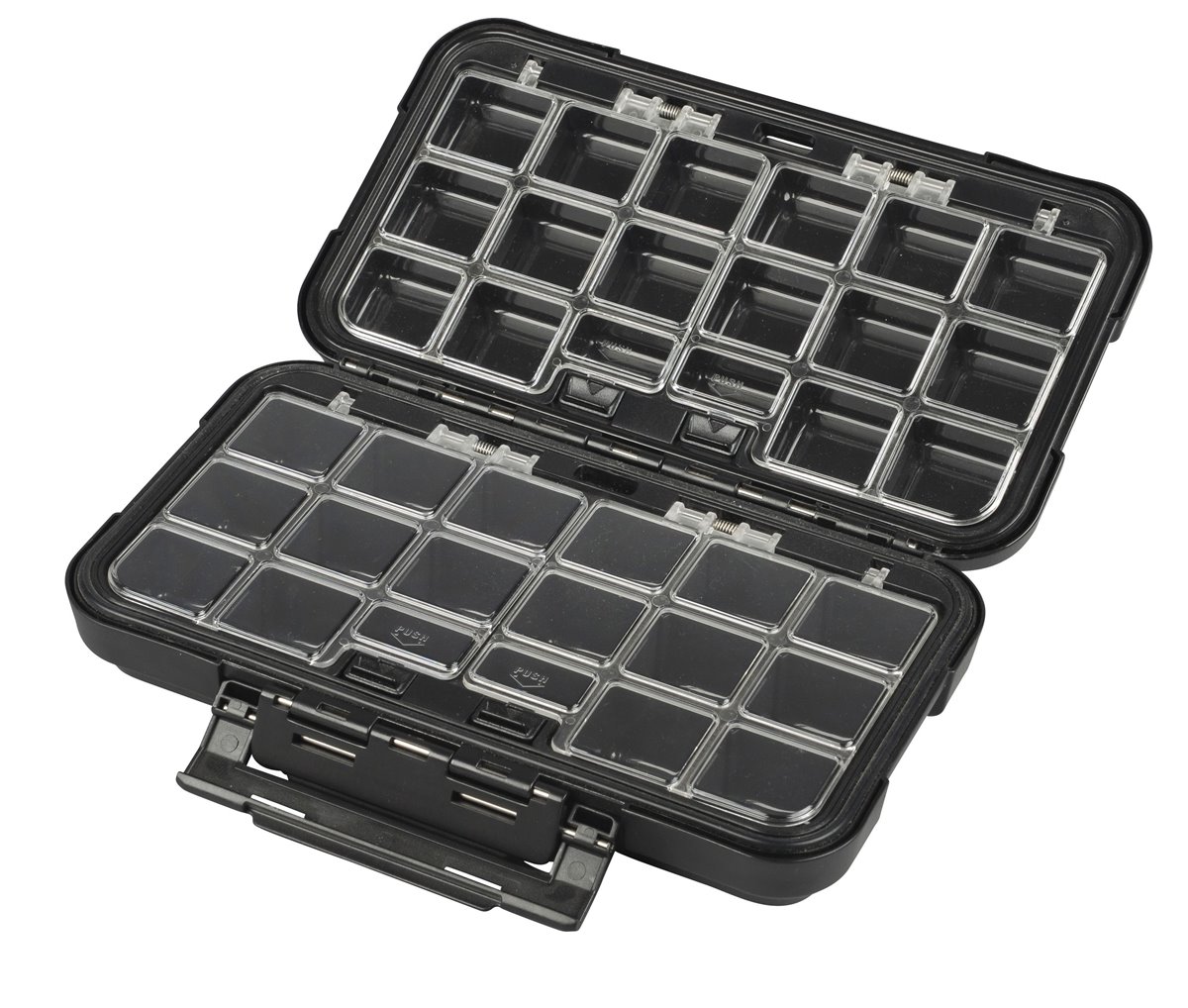 Für kleine Zubehörteile wie Wirbel, Snaps, Klemmhülsen, und Sprengringe ist diese hoch­wertige  Box perfekt. Mit dem anliegenden Deckel sind ihre Kleinteile sicher verstaut und auch einfach herauszunehmen. Bei 36 einzelnen Fächern bekommt einiges in dieser Box verstaut und trotzdem braucht sie wenig Platz.
