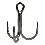 Diese extra starke Drill­ing Ver­sion ver­fügt über ein Magic Eye zur ein­fachen Be­fest­ig­ung am Spreng­ring und einen ver­kürz­ten Haken­schaft (Short Shank). Dies bietet große Vor­teile beim Kunst­köder­fischen, da die Haken­spitzen näher am Haken platz­iert sind.