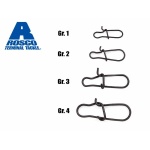 Ein hochwertiger Snap aus den USA. Dieser Karabiner, ermöglicht ein schnelles Auswechseln von Ködern. Er hat eine hohe Tragkraft und ermöglicht ein freies Köderspiel. Durch seine matt-schwarze Färbung, reflektiert er unter Wasser nicht.