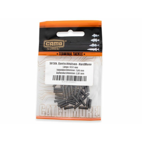 Die CAMO Quetschhülsen sind extra für Hardmono gefertigt, für das perfekte verarbeiten von Hardmono­vorfächern. Der optimale Schnurdurchmesser für die Quetschhülsen ist 0,65 mm bis 0,90 mm.